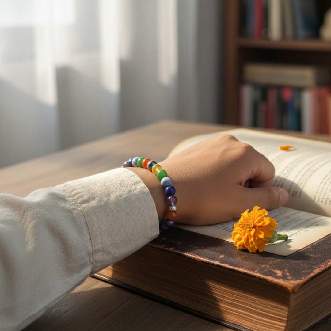 This 7 Chakra Healing Bracelet is crafted with natural crystal gemstones, each representing one of the seven chakras of the body.