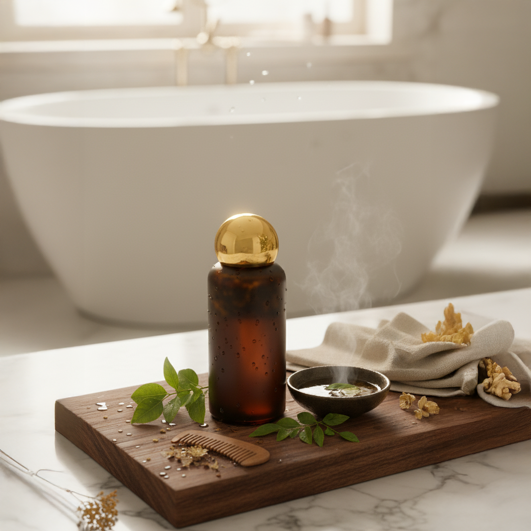 Experience the goodness of Ayurveda with our Herbal Hair Oil, carefully crafted using traditional herbs known for improving scalp health and strengthening hair from root to tip. This lightweight, non-sticky oil deeply nourishes the scalp, improves blood circulation, and helps reduce hair fall, dandruff, and dryness.